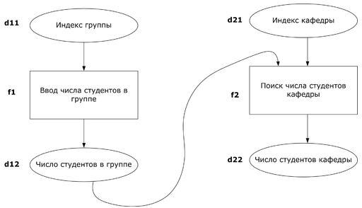 Функциональный граф предметной области - это граф, узлы которого обозначают процессы и данные будущей системы, а дуги используются для обозначение входных и выходные данных процессов этого графа.
