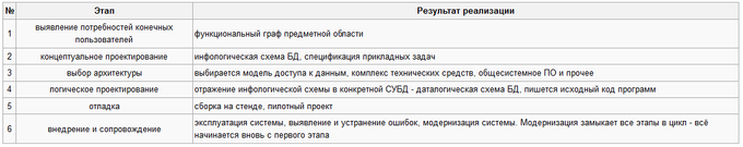 Выполняется отражение концептуального проекта (2 этап) в СУБД или в КТС (3 этап).