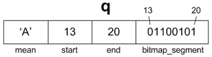 Предположим, что запись блока листового уровня для индекса по атрибуту q имеет вид 'A' 13 20 bitmap_segment1, а для индекса по атрибуту S имеет вид 'B' 13 20 bitmap_segment2.