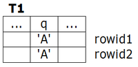 система определяет идентификаторы записей по условию q = 'A', используя индекс для q.