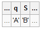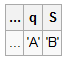 Эта запись означает, что 14, 15, 18 и 20 записи имееют значение атрибута q равное 'A'.