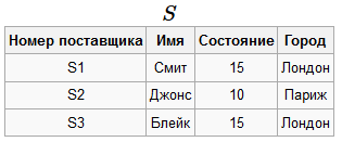 S - таблица "Поставщик", описывающая поставщиков деталей. Имеет следующие поля: