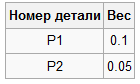 Вывести веса деталей