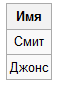 Пример таблицы: