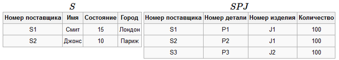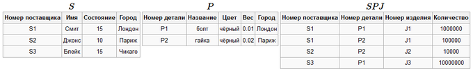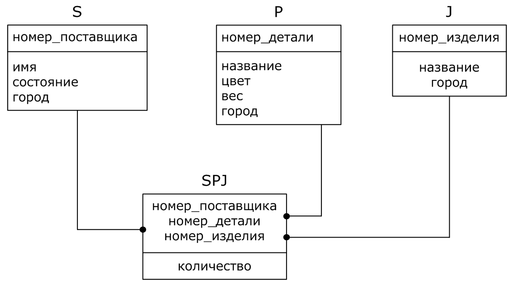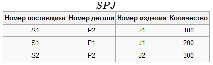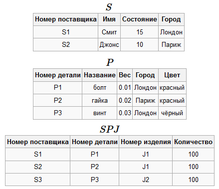 Схема базы данных: ρ=(S,P,J,SPJ).