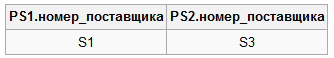 SELECT PS1.номер_поставщика, PS2.номер_поставщика