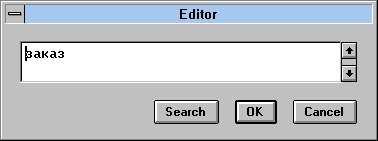 Редактировать. Если при вводе текст не умещается в поле, то левые символы сдвигаются влево за пределы поля (выполняется прокрутка поля). Эту команду можно использовать, чтобы посмотреть значение поля целиком (или большую его часть). На экране появляется окно Editor (рис. 4.4). Здесь можно отредактировать поле и заменить некоторые его старые фрагменты на новые (кнопка Search).