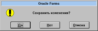 Откатить. Позволяет восстановить в базе данных КИСП данные, которые были изменены после последнего выполнения команды Сохранить, и завершить выполнение формы. При этом на экране появляется окно Oracle Forms (рис. 4.3), с помощью которого пользователь КИСП должен подтвердить (Нет) или опровергнуть (Да) своё желание откатить базу данных.