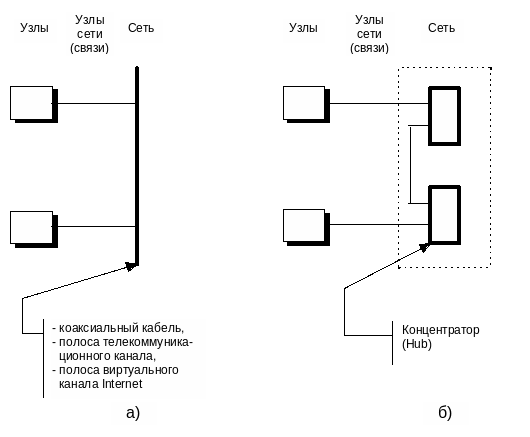 Рис. 8.6. Примеры сетей с разделяемым каналом связи.