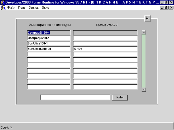 Здесь можно включить, удалить, изменить наименование варианта архитектуры проектируемой РСОД, а также ввести комментарий.