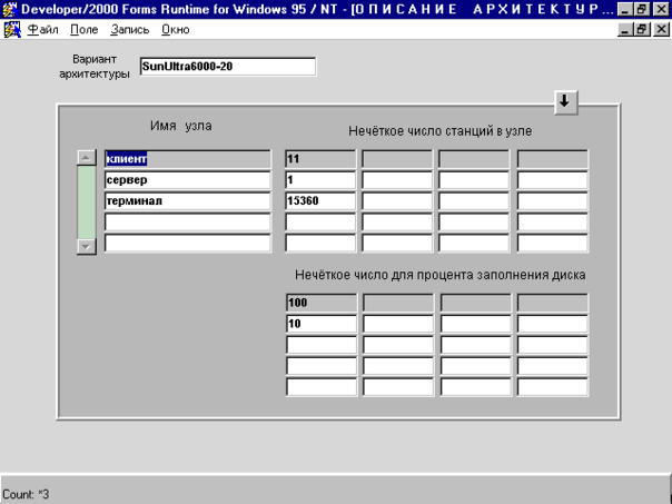 Рис. 8.4. Окно для определения числа станций в узле и процентов заполнения диска в виде нечётких чисел.