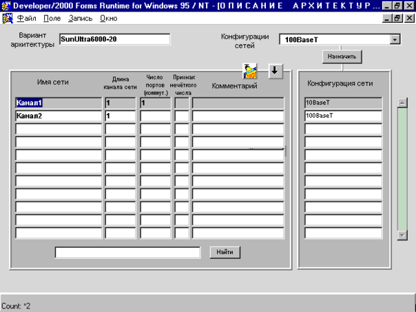 Рис. 8.1. Форма "Описание архитектуры сети"
