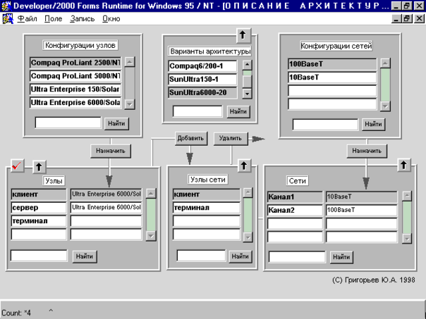На рис. 8.1 показана форма, которая появляется на экране после щелчка на кнопке Описание архитектуры сети головной формы КИСП.
