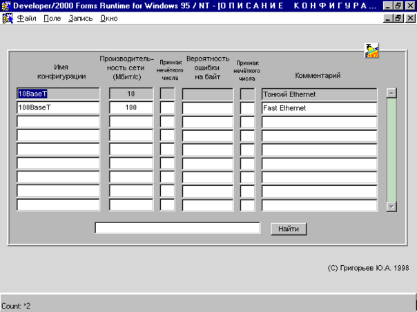 Рис. 13.1. Форма "Описание конфигураций сетей".