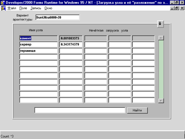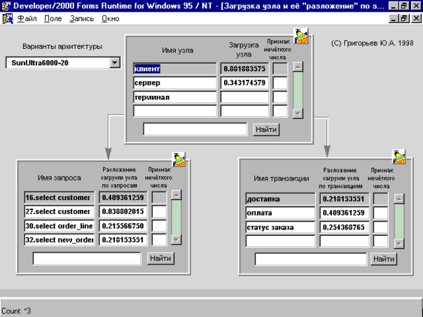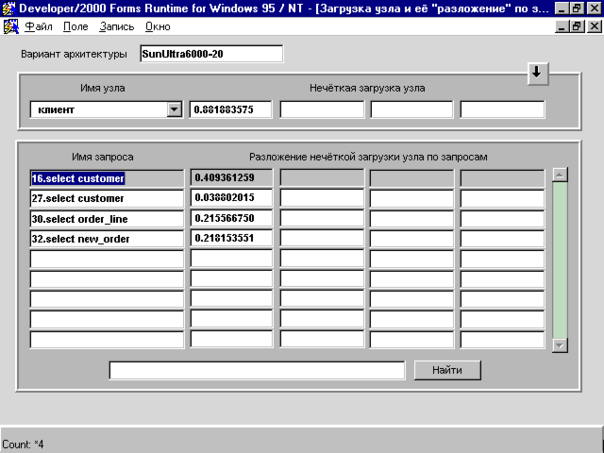 Рис. 15.3. Окно с "разложением" нечёткой загрузки узла по запросам.