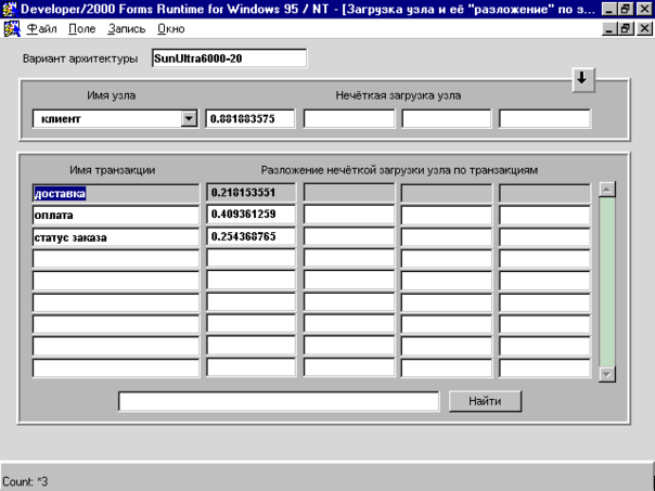 Рис. 15.4. Окно с "разложением" нечёткой загрузки узла по транзакциям.