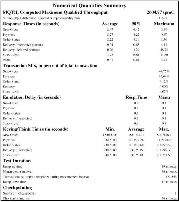 На третьей странице (рис. 22.4) отображаются результаты измерений временных показателей транзакций, полученные после проведения теста ТРС-С. Эти данные используются для заполнения базы данных КИСП.