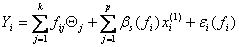 где i=1,…, n, индикаторные переменные fij равны 1, если j-e условие эксперимента имело место при наблюдении Yi, и равны 0 в ином случае. (fij) могут соответствовать рез-там дихотомизации номинального признака F с градациями f1,..., fk (см. Признак); номинальный же признак может быть сложным: каждой его градации может отвечать сочетание значений нек-рых первичных, напр, взятых из анкеты, признаков; коэффициенты Θj определяют эффект влияния j-ro условия;