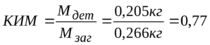 Для оценки эффективности использования металла рассчитаем КИМ:
