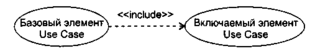 Отношение включения (рис. 12.31) между элементами Use Case означает, что базовый элемент Use Case явно включает поведение другого элемента Use Case в точке, которая определена в базе. Включаемый элемент Use Case никогда не используется самостоятельно — его конкретизация может быть только частью другого, большего элемента Use Case. Отношение включения является примером отношения делегации. При этом в отдельное место (включаемый элемент Use Case) помещается определенный набор обязанностей системы. Далее остальные части системы могут агрегировать в себя эти обязанности (при необходимости).