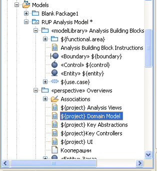 Выберите Analysis and Design / RUP Analysis Package, укажите имя модели и нажмите кнопку Finish;.