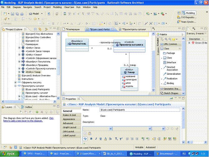 Открыть в среде Software Architect проект. Добавить к нему модель анализа RUP.