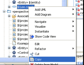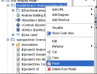 Для создания кооперации выбрать строительный блок кооперации (use.case), скопировать его (copy) и вставить в модель анализа (paste):
