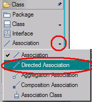 Теперь создайте некоторые сопоставления для связи этих трех классов. Как показано на рисунке 8, нажмите стрелку рядом с командой Association в панели Palette и выберите Directed Association;