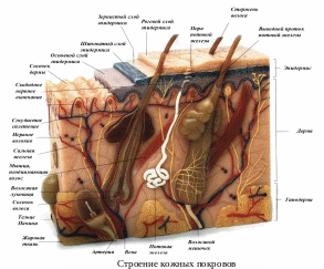 ожный покров состоит из трех основных слоев: эпидермиса (надкожицы), дермы (собственно кожи) и гиподермы (подкожной жировой клетчатки).