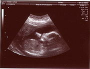 Этот эффект широко применяется в акушерстве, так как звуки, идущие от матки, легко регистрируются. На ранней стадии беременности звук проходит через мочевой пузырь. Когда матка наполняется жидкостью, она сама начинает проводить звук. Положение плаценты определяется по звукам протекающей через нее крови, а через 9 — 10 недель с момента образования плода прослушивается биение его сердца. С помощью ультразвукового исследования можно также определять количество зародышей или констатировать смерть плода.