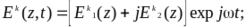 Зададим комплексное напряжение на пьезоэлементах Е1 и Е2 :