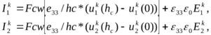 , upk(0) –смещение левого края k –го пьезоэлемента,(р=1,2), upk(hc)–смещение правого края пьезоэлемента.(p=1,2)