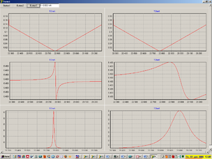 Получаем характеристики: АЧХ и ФЧХ электрического импеданса пьезокерамики для случая холостого хода и для случая взаимодействия с биотканью.
