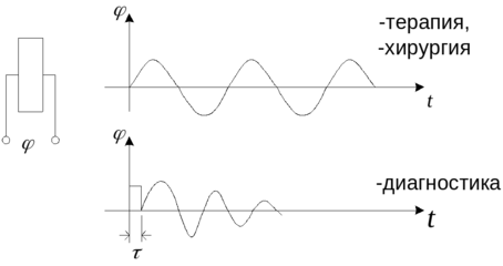 Возбуждающий импульс разлагаем в ряд Фурье и решение ищется в виде: