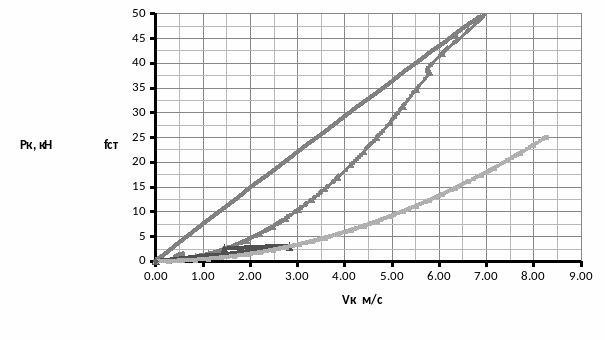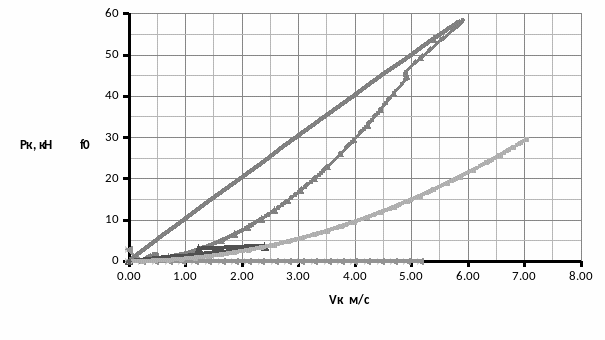 Построим характеристики сил гидравлического сопротивления подвески на прямом и обратном ходах катка при различных значениях хода (