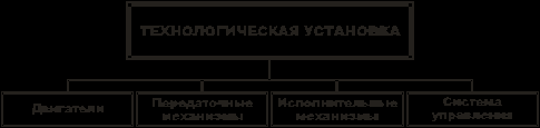 Как правило, технологическая установка (см. рис.1.1) состоит из четырёх основных систем: одного или нескольких источников движения (двигателей), передаточных механизмов, исполнительных устройств, а также системы управления (или САУ – системы автоматического управления).