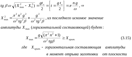 С другой стороны, производная от перемещения Х0 по времени в уравнении (3.13), позволяет подставить в выражение (3.14) значение горизонтальной составляющей скорости заготовки в момент отрыва от лотка и получить искомое значение амплитуды колебания лотка в виде: