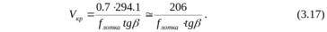 Переходя от амплитудных перемещений к скоростям движения лотка и заготовки согласно форм. (3.8) и (3.11), легко устанавливается критическая (максимальная) амплитуда колебаний лотка для режима непрерывного подбрасывания, а именно: