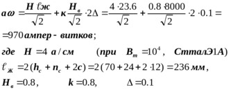Условие проверки катушки на нагрев: Ра / Sнар 0.05 вт/см2,