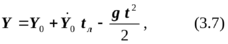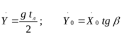 уравнение вертикального перемещения заготовки (оно соответствует математическому описанию физической задачи - свободной полет тела, брошенного под углом к горизонту)