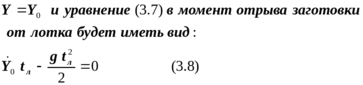 где Ŷ0 и X0 –вертикальная и горизонтальная составляющие скорости заготовки в момент ее отрыва от лотка.