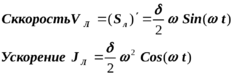 Скорость и ускорение опорной поверхности лотка получим дифференцированием (3.9) :