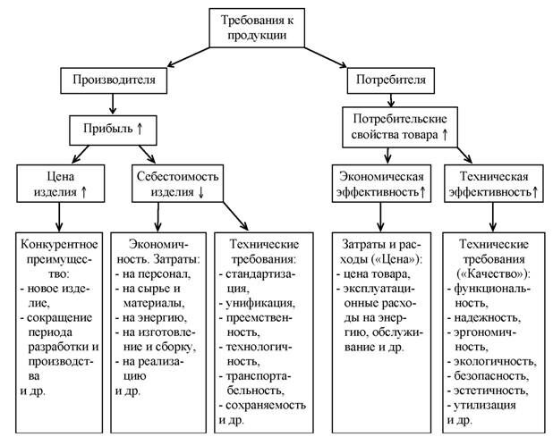 Процесс проектирования всегда подчинен необходимости удовлетворения интересов двух групп людей: производителей и потребителей продукции (товаров, работ, услуг). Каждый производитель стремится получить максимум выгоды от выпуска и реализации своей продукции. Однако реализация возможна только при условии существования спроса на такую продукцию, т.е. наличия ее потребителя. В свою очередь, каждый потребитель желает с минимальными хлопотами и затратами получить нужный ему товар с максимальными потребительскими свойствами.