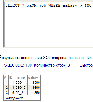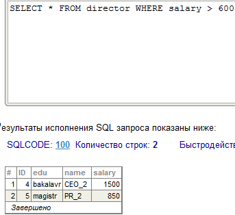 В среде Cache` Портал (раздел SQL, пакет USER) продемонстрировать выполнение SQL операторов SELECT для просмотра объектов базового класса и объектов производного классов с условиями (по варианту).