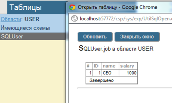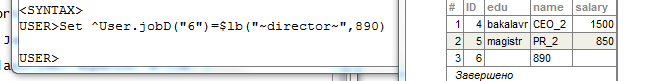 В среде Cache` Портал (раздел SQL, пакет USER) продемонстрировать выполнение SQL оператора UPDATE для изменения полей объекта класса «А».