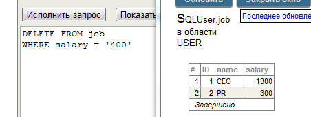 В среде Cache` Портал (раздел SQL, пакет USER) продемонстрировать выполнение SQL оператора DELETE для удаления объектов класса «А».