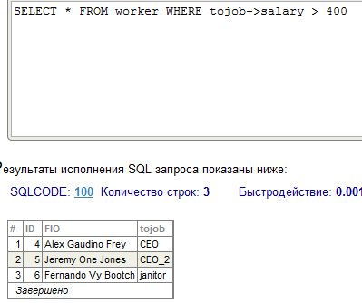 В среде Cache` Портал (раздел SQL, пакет USER) продемонстрировать выполнение SQL операторов SELECT для просмотра объектов связанных классов (по варианту), используя ссылочный синтаксис вместо соединения таблиц.