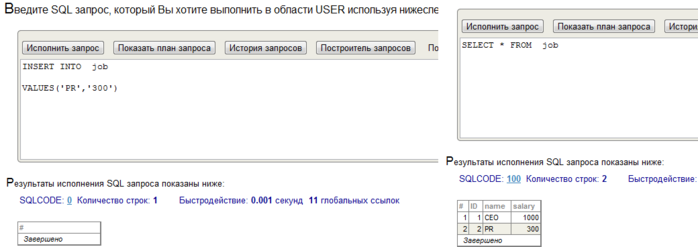 В среде Cache` Портал (раздел SQL, пакет USER) продемонстрировать выполнение SQL оператора INSERT для добавления объекта класса «А» (с инициализацией его свойств).
