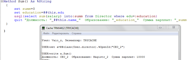 3.2. Создание и вызов метода класса. Объектный синтаксис и встроенный SQL