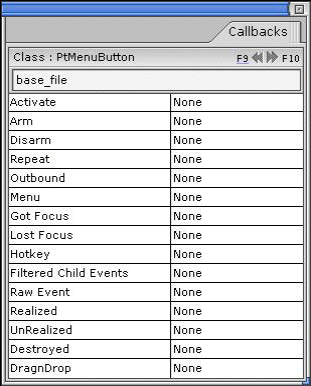 2. Чтобы модуль меню File выскакивал, когда Вы нажимаете кнопку File, Вы должны прикрепить callback вызов Arm к кнопке. Прикрепляя callback вызов Arm, Вы можете открыть меню, используя или «щелчок-перемещение-щелчок», или « нажатие- перетаскивание-отпускание» (click-move-click or press-drag-release).